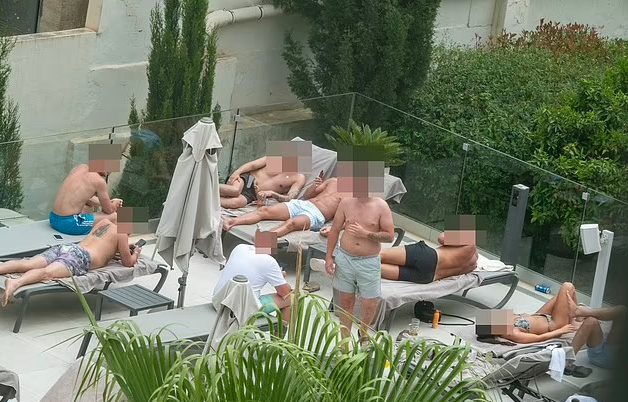 Despite their friends' legal troubles, the rest of the group wasted little time in resuming their holiday antics. Just hours after the arrests, the remaining tourists were spotted lounging poolside at their £300-per-night hotel, the INNside Melia Palma Bosque, indulging in a seven-hour drinking session.